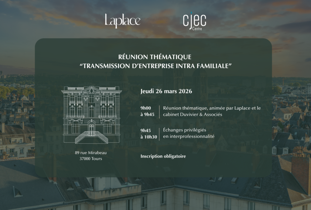 La transmission d’entreprise au sein de la famille est un sujet complexe, au carrefour de la fiscalité, du droit civil et de la stratégie patrimoniale. Pour nous éclairer sur ces enjeux, nous aurons le privilège d’être accompagnés par les experts de Laplace et du cabinet Duvivier & Associés.