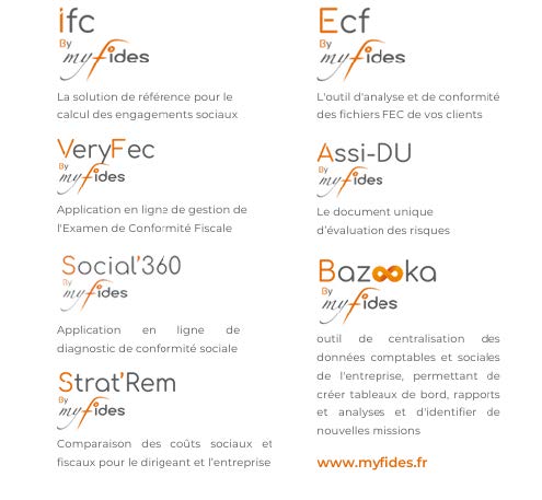 Fort du succès rencontré par son outil de calcul des Indemnités de fin de carrière “IFC by Myfides”, elle a développé au fil des ans de nouveaux outils : rémunération du dirigeant, analyse des FEC, examen de Conformité Fiscale, audit de conformité sociale, tableaux de bords automatisés…